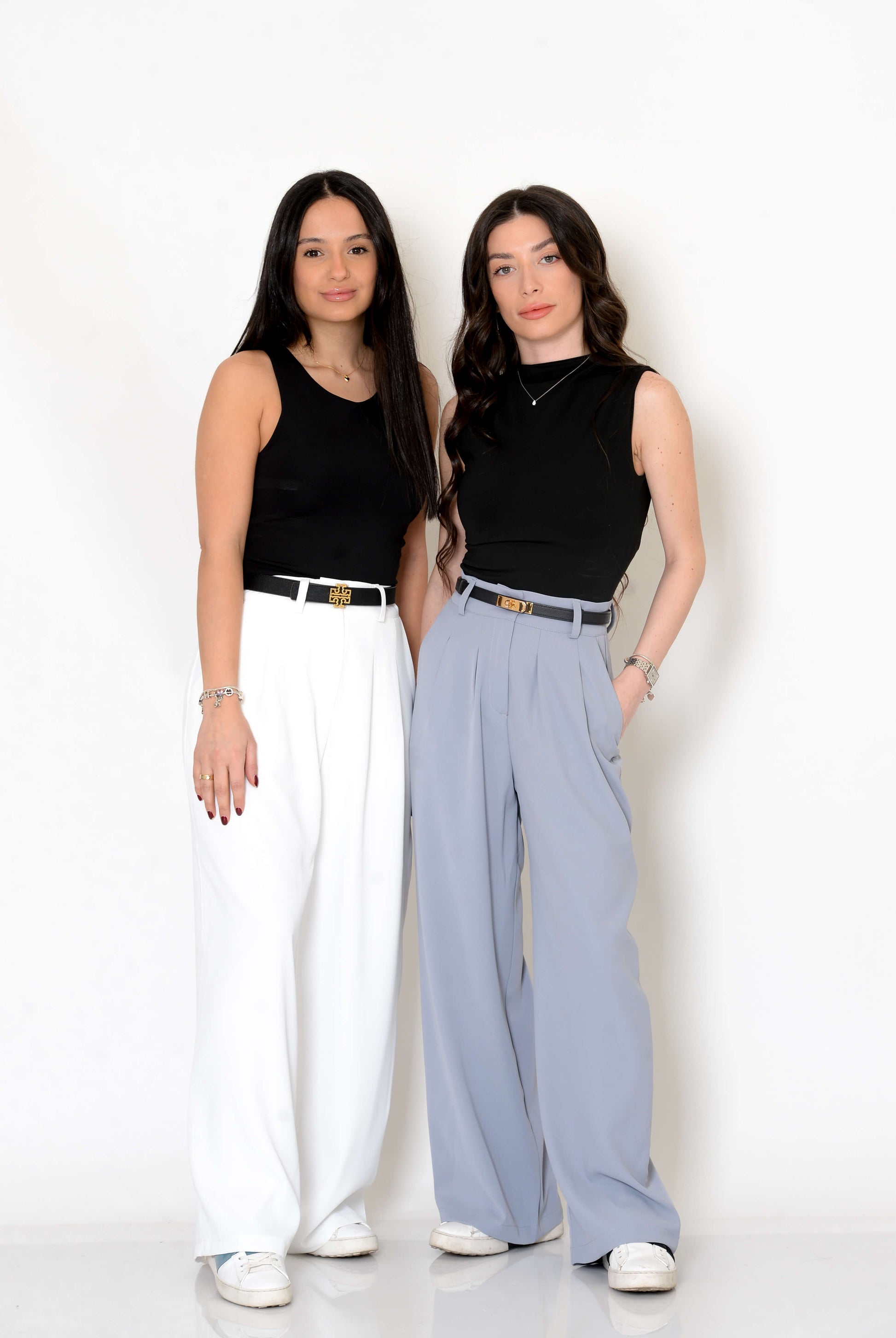 High-rise, flowy, and made for petites. Available in White and Mist Blue, these trousers offer the perfect blend of comfort and style for any occasion.